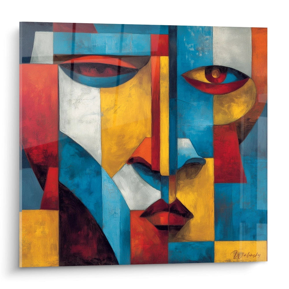 Cette œuvre d'art contemporaine présente un tableau visage d'une intensité visuelle remarquable, caractérisé par une approche géométrique audacieuse. Le sujet principal révèle un portrait fragmenté aux lignes angulaires, où chaque élément facial est décomposé et réinterprété selon une esthétique moderniste. Cette décoration murale visage géométrique frappe immédiatement par ses couleurs vives et contrastées qui structurent l'ensemble de la composition. Les yeux, éléments centraux de l'œuvre, captent le regard avec leur forme stylisée et leurs nuances chromatiques sophistiquées. Cette approche artistique transforme un portrait traditionnel en une exploration visuelle contemporaine fascinante.