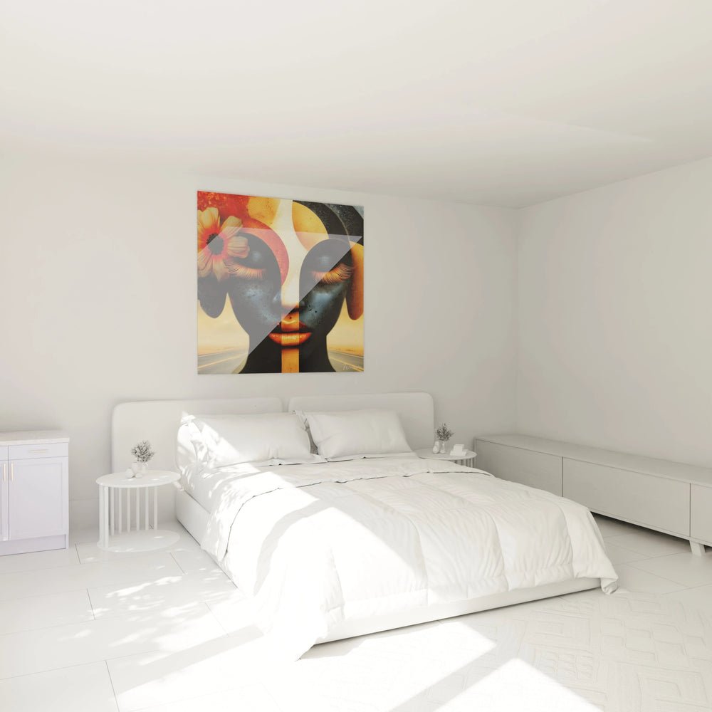 L'expérience visuelle de ce tableau masque décoratif moderne évolue selon la distance d'observation, révélant des détails insoupçonnés à chaque approche. À distance, l'impact global repose sur le contraste chromatique saisissant et la symétrie parfaite de la composition. En s'approchant, les textures subtiles des différentes surfaces deviennent perceptibles : les micro-détails des paupières ornementées, les variations de brillance sur la peau, les nervures délicates de la fleur décorative. L'examen rapproché dévoile également les transitions chromatiques subtiles et les effets de matière qui donnent vie à cette œuvre masque africain stylisé. Cette profondeur visuelle multicouche garantit une découverte permanente et maintient l'intérêt esthétique dans la durée.