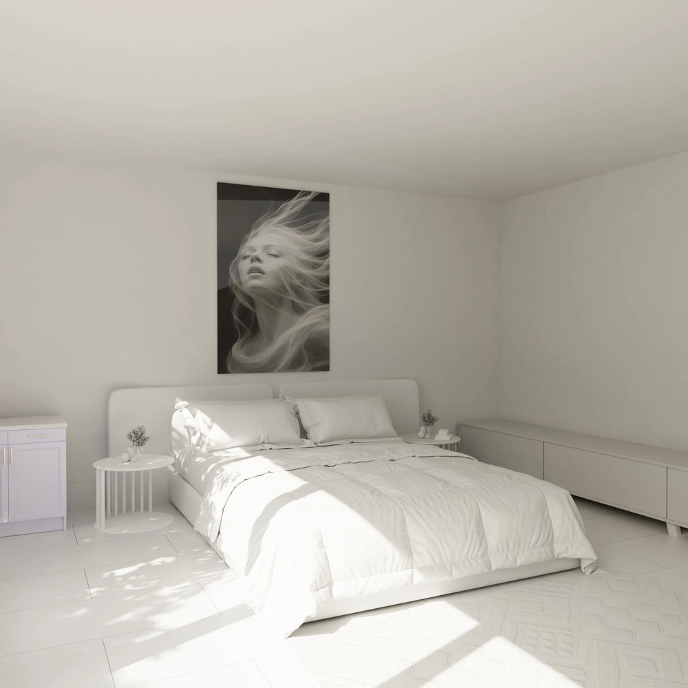 Parfait pour sublimer un salon aux lignes épurées, instaurer une atmosphère apaisante dans une chambre ou créer une ambiance inspirante dans un espace de méditation, ce tableau s’impose comme le cœur battant de votre décor. Sa palette subtile de blancs, noirs et gris déploie un équilibre harmonieux entre lumière et ombre, révélant un visage aux contours flous, presque en mouvement, qui capte la fluidité des émotions humaines.