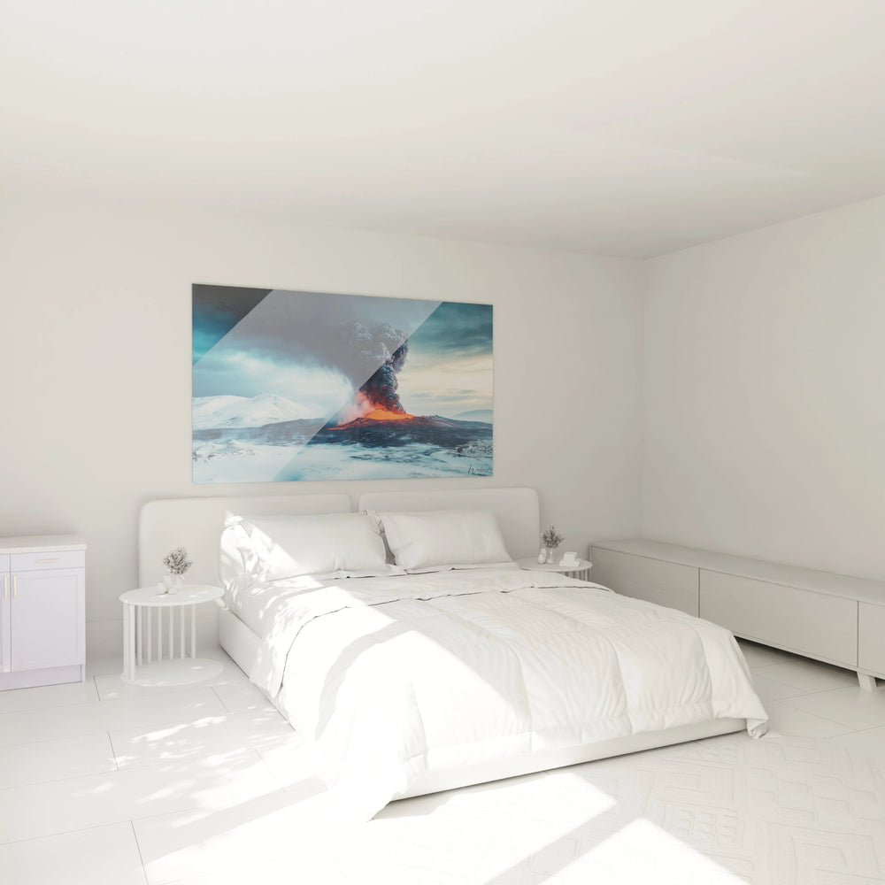 Chaque dĂ©tail de ce tableau Ă©voque la force titanesque des Ă©lĂ©ments : la lave rougeoyante qui serpente avec vitalitĂ© sur un sol austĂšre, la fumĂ©e tourbillonnante qui sâĂ©lĂšve en volutes dramatiques, et la blancheur silencieuse des montagnes enneigĂ©es qui rĂ©sistent au temps. Cet affrontement entre chaos et sĂ©rĂ©nitĂ© ne laisse personne indiffĂ©rent, vous offrant une expĂ©rience visuelle aussi intense que contemplative.