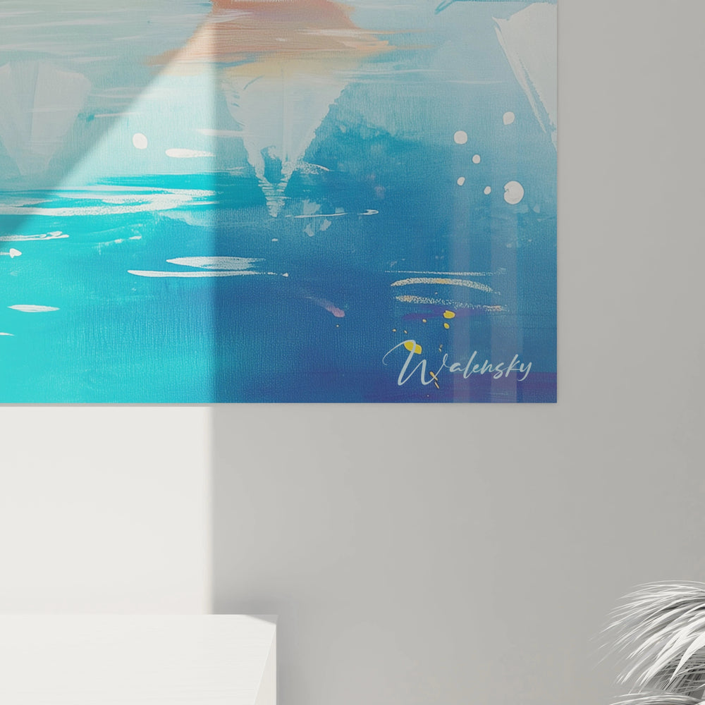 Imaginez un instant : la douceur des teintes bleues mêlées à des touches multicolores abstraites, qui semblent danser sur la toile avec une fluidité presque hypnotique. Ce tableau ne se contente pas d’habiller vos murs, il crée une atmosphère apaisante tout en stimulant votre imagination. Chaque regard posé révèle une nouvelle facette, un angle inédit, un éclat de lumière différent. Laissez-vous transporter par cette sensation de profondeur et de mouvement subtilement maîtrisée.