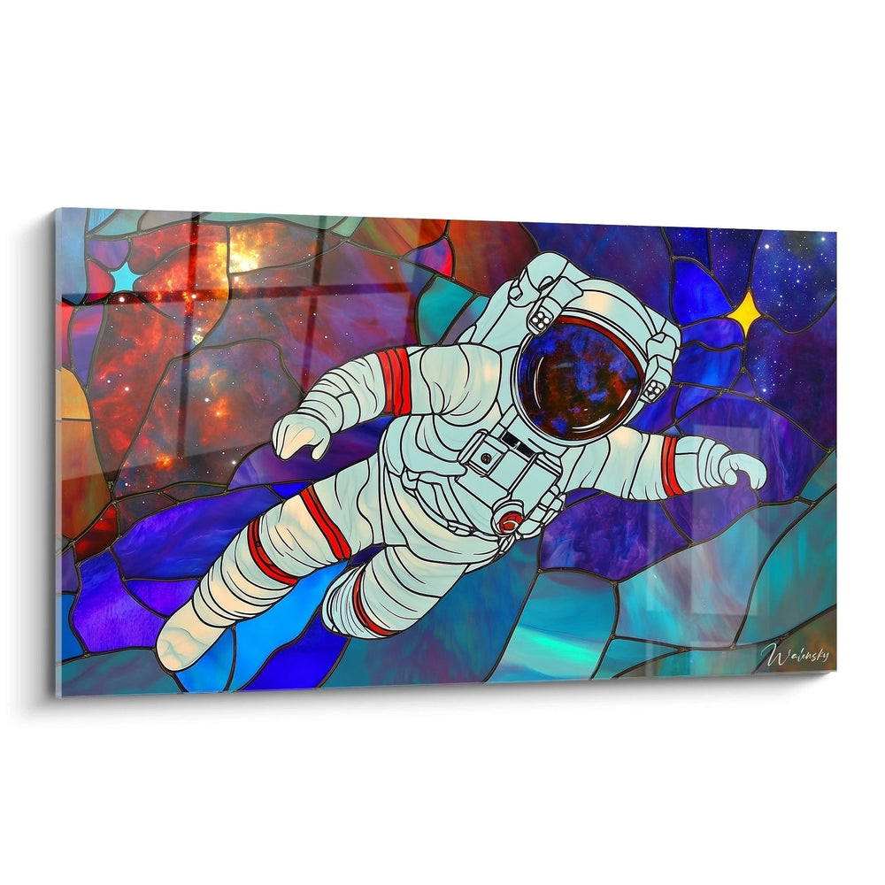 Ajoutez dès maintenant le Tableau Voyageur Cosmique - édition vitraux à votre collection et laissez la lumière vous transporter.
