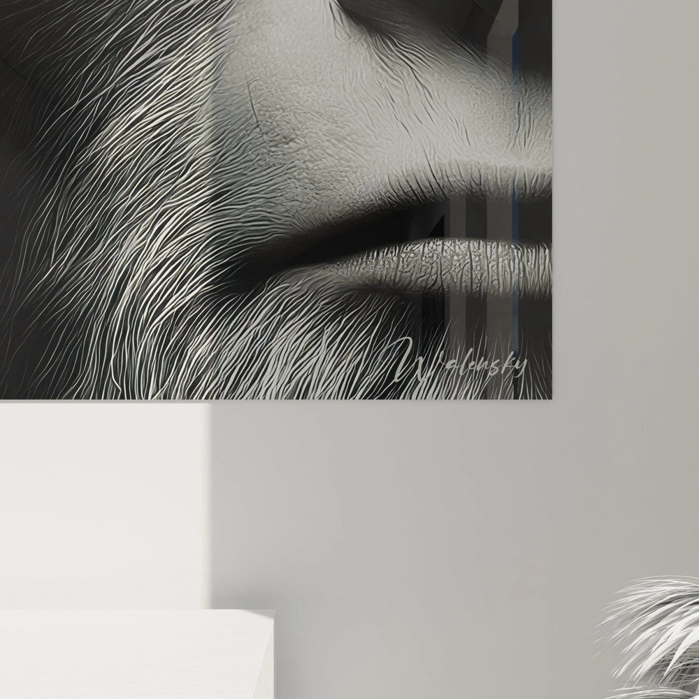 Ce tableau mural yeti présente une œuvre d'art fantastique saisissante où domine le portrait d'une créature légendaire yeti au regard orange hypnotisant. L'artiste a magistralement capturé l'essence mystérieuse de cette créature des montagnes en juxtaposant un paysage naturel dramatique avec le visage imposant du yeti. La composition se divise harmonieusement entre un paysage hivernal mystique peuplé d'arbres aux branches dorées et un ciel orageux, et le portrait détaillé de la créature aux traits humanoïdes mais sauvages. Les détails du pelage sont rendus avec une précision remarquable, chaque poil semblant vibrer de réalisme. L'œil orange de la créature constitue le point focal de cette décoration murale fantastique, irradiant une intensité qui semble suivre le spectateur. Ce tableau yeti premium transforme instantanément l'atmosphère d'une pièce, apportant une dimension mystérieuse et captivante à votre art mural moderne. La technique artistique utilisée mélange habilement réalisme et fantastique, créant une œuvre qui interpelle autant qu'elle fascine.