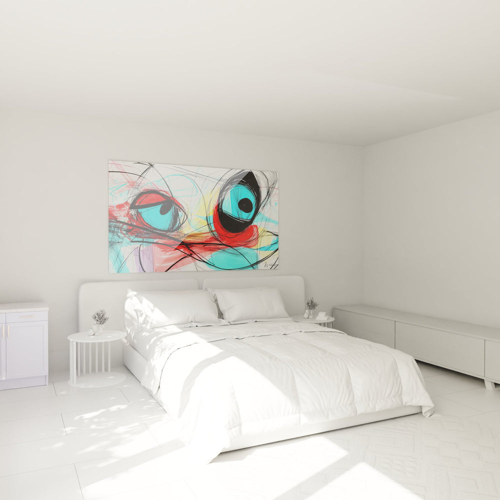 Tags : tableau yeux abstraits, art mural coloré, dessin expressif moderne, décoration contemporaine, œuvre regard artistique